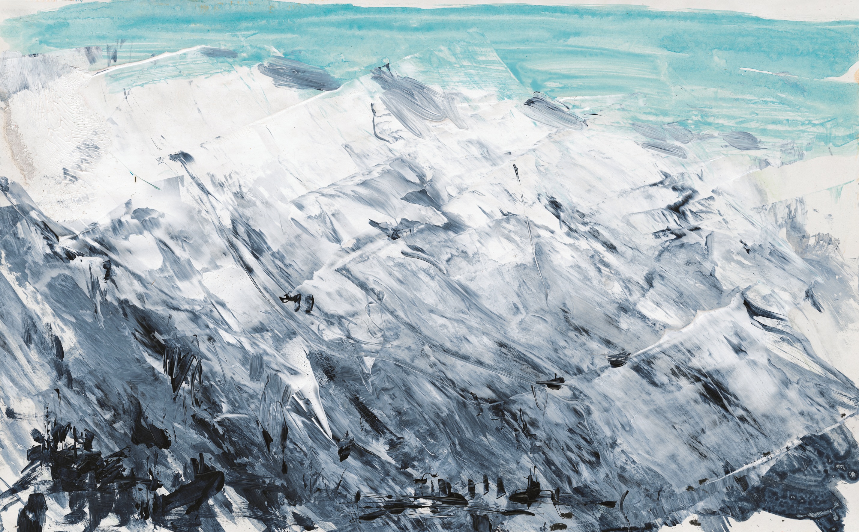 ... Ernst Heckelmanns Wahrnehmung heimatlicher Gebirgslandschaft ist eine mit raschem breiten Pinsel über das Papier gewischte, bewegte, dynamische Flüchtigkeit - changierend in den Grenzerfahrungen zwischen der Wiedergabe des realen, augenblickshaften visuellen Eindrucks und dem sich Anvertrauen einer aus dem Inneren einer archetypischen Gebirgsphantasie herausdrängenden, sich aus rationalen Fesseln befreienden malerischen Gestik. Diese oft lawinenartig, ja fast chaotisch erscheinenden Strukturen innerhalb der bildlichen Formationen, die der >Idee Bergnatur